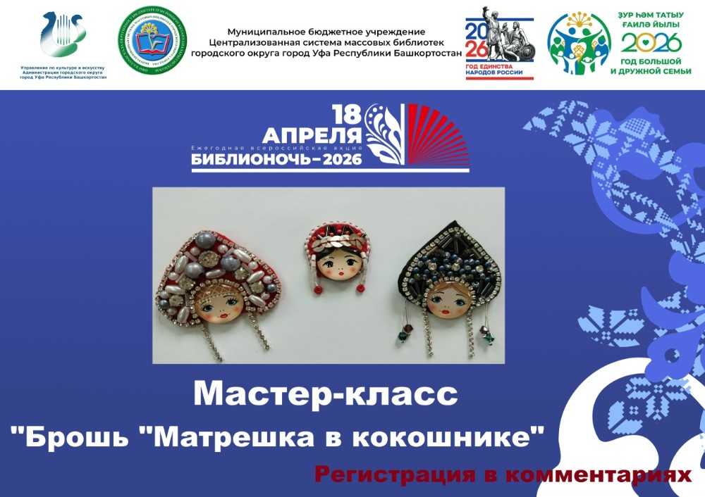 Друзья! Продолжаем знакомить вас с событиями Библионочи-2026. - Откроет главную площадку Библионочи-2026 творческий коллектив Первичного отделения МБДОУ Детский сад №169 ГО г.Уфа РБ постановкой "Малай кураист". - "Искусство быть услышанным" лекция Наили Фазлетдиновой " Фазлетдинова Наиля Бафалыевна, педагог дополнительного образования, руководитель кружка "Лепи - говори" УГДДТ им. В.М. Комарова, Главный эксперт чемпионата "Профессионалы" по компетенции "Промышленный дизайн", член профессионального союза художников России, расскажет гостям площадки "Родной страны многоголосье" о своем проекте «Лепи-говори», где дети с помощью керамики развивают речевой аппарат. Наиля Бафалыевна убеждена, что искусство — это не только творчество, но и мощный инструмент для укрепления здоровья. В основе её проекта лежит простая, но важная идея: работа с глиной развивает мелкую моторику, которая напрямую связана с формированием речи. Когда ребёнок лепит, его пальцы и мозг активно работают, а речевые центры получают естественную стимуляцию. Это помогает детям говорить чище, увереннее и выразительнее. Она подчёркивает, что влияние искусства на здоровье гораздо шире. Лепка снимает напряжение, учит концентрации и терпению, помогает детям выражать свои мысли и чувства. В кружке создаётся атмосфера поддержки, где каждый ребёнок чувствует себя успешным и может раскрыть свой потенциал. «Лепи-говори» — это не просто занятия по керамике, а возможность показать, как творчество может стать реальной опорой для гармоничного развития и здоровья детей. - Мастер-класс "Брошь "Матрешка в кокошнике" пройдет в 19:00 на площадке "Чудеса рукотворённые". Вы сможете изготовить уникальную брошь из фетра в технике вышивки с использованием бисера , бусин и страз. ОБЯЗАТЕЛЬНА ЗАПИСЬ! Количество мест ограничено. Напишите в комментарии, если хотите принять участие в мастер-классе. Участие бесплатно. Все материалы предоставляются.